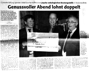 psycho-onkologischen Beratungsstelle im Kreis zugute. [...] Stiftungsgründer Silvano Comiotto stand die gute